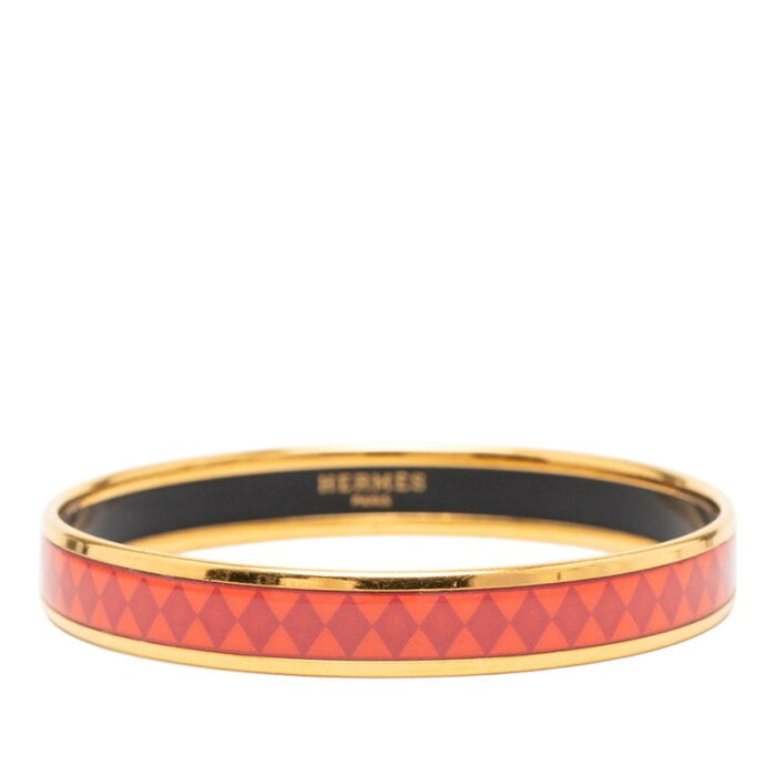 エルメス エマイユPM 七宝焼き バングル ゴールド レッド系 メッキ エナメル レディース HERMES 【中古】