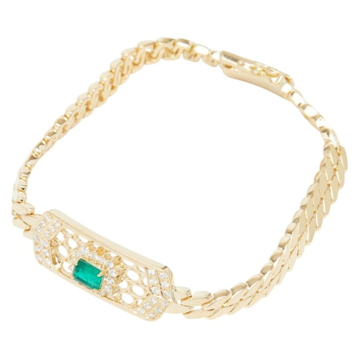 K18YG イエローゴールド エメラルド0.62ct ダイヤ0.38ct ブレスレット レディース 【中古】