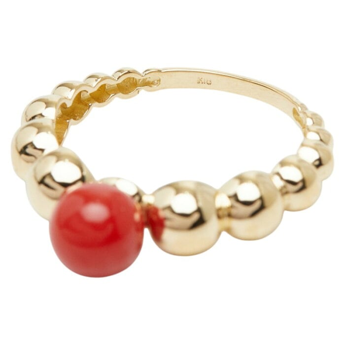 珊瑚(コーラル) K18YG イエローゴールド 赤サンゴ6.1mm リング 指輪 レディース 11号 【中古】
