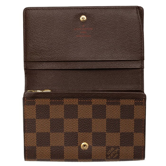 ルイ ヴィトン ダミエ ポルトフォイユ トレゾール 二つ折り財布 N61736 ブラウン PVC レザー レディース LOUIS VUITTON 【中古】