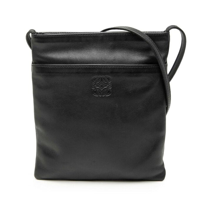 ロエベ アナグラム 斜め掛け ショルダーバッグ ポシェット ブラック レザー レディース LOEWE 【中古】