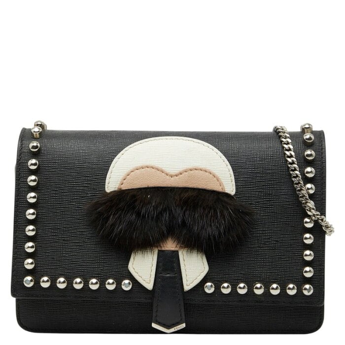 フェンディ カーリト スタッズ チェーン ウォレットバッグ ショルダーバッグ 8M0346 ブラック レザー レディース FENDI 【中古】