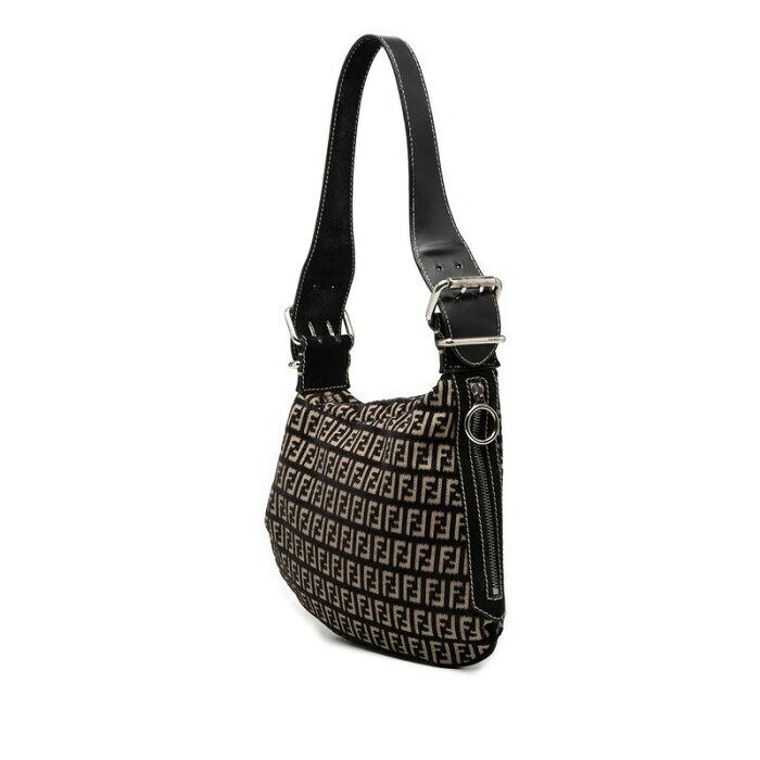 フェンディ ズッキーノ ショルダーバッグ ブラック ベージュ キャンバス レザー スウェード レディース FENDI 【中古】
