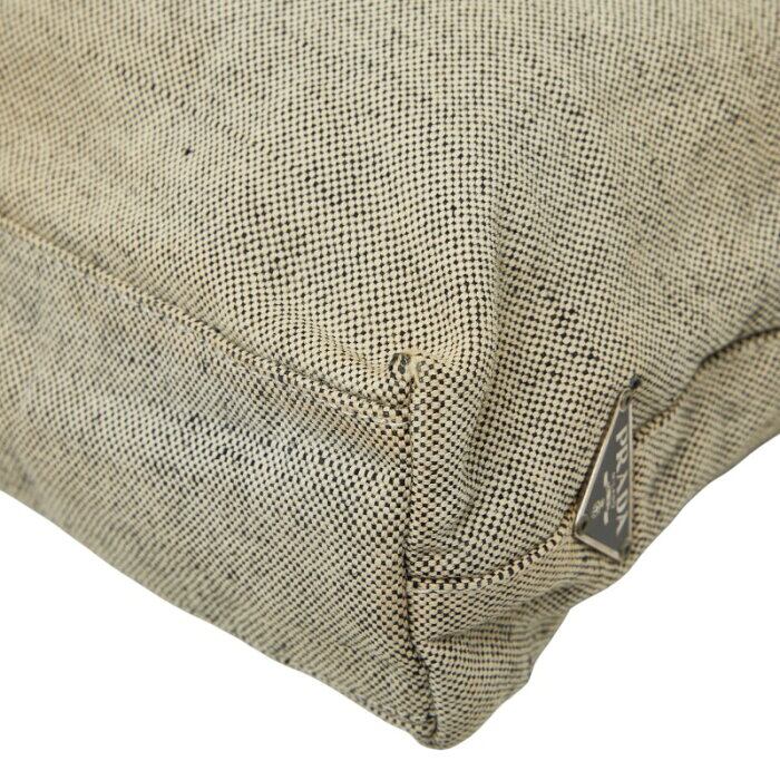 プラダ 三角ロゴプレート トートバッグ ホワイト ブラック キャンバス レディース PRADA 【中古】