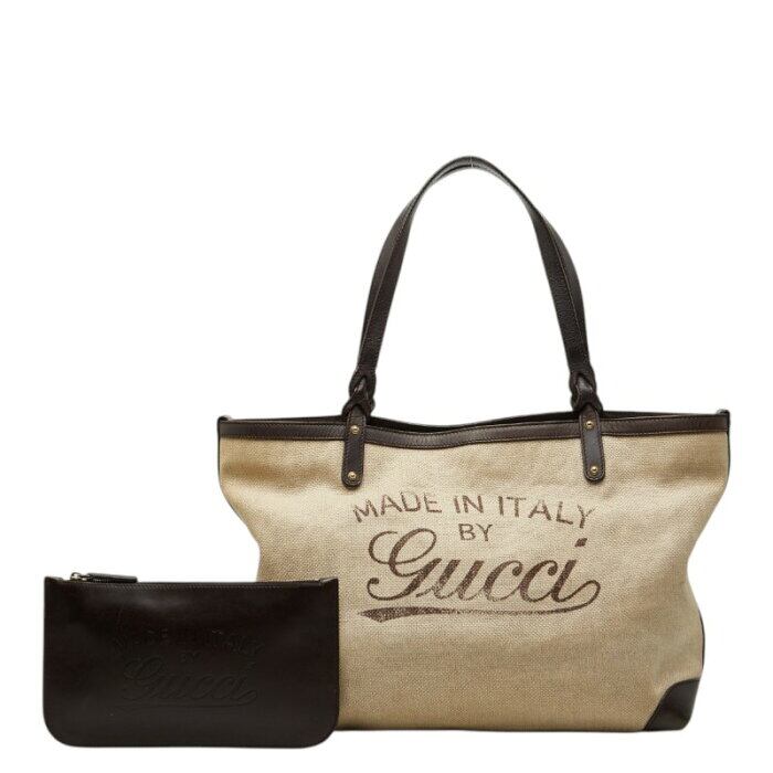 グッチ グッチクラフト トートバッグ ハンドバッグ 247209 ベージュ ブラウン キャンバス レザー レディース GUCCI 【中古】