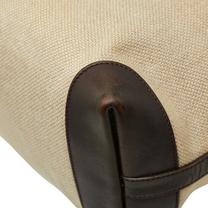 外側: スレ、キズ、薄汚れ 底面、角スレ ハンドル、スレ、キズ、コバひび割れ 金具、くすみ、僅かにメッキはがれ 開閉口、コバに亀裂 内側、汚れ、変色、若干の破れ