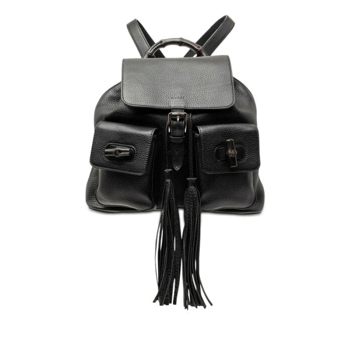 グッチ バンブー タッセル リュック バックパック 370833 ブラック レザー レディース GUCCI 【中古】