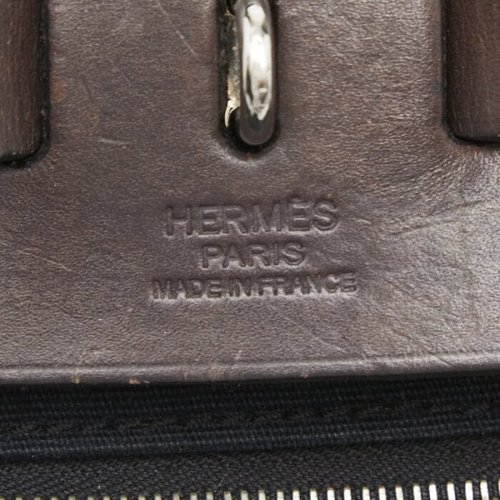 エルメス エールバッグジップPM ハンドバッグ ブラック ブラウン トワルオフィシエ レザー レディース HERMES 【中古】