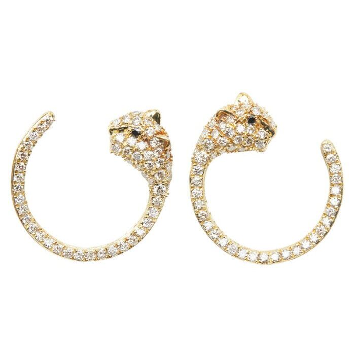 K18YG イエローゴールド ダイヤ1.00ct パンサーモチーフ スタッドピアス ピアス レディース 【中古】