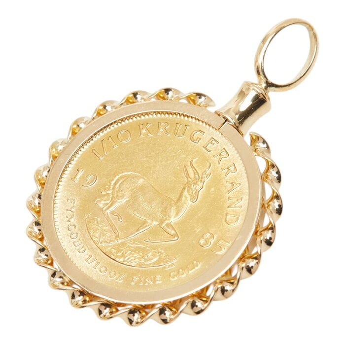 K22YG イエローゴールド K18YG イエローゴールド クルーガーランド金貨 1/10oz 南アフリカ 大統領 シカ 1985年 ペンダントトップ ネックレス レディース 【中古】