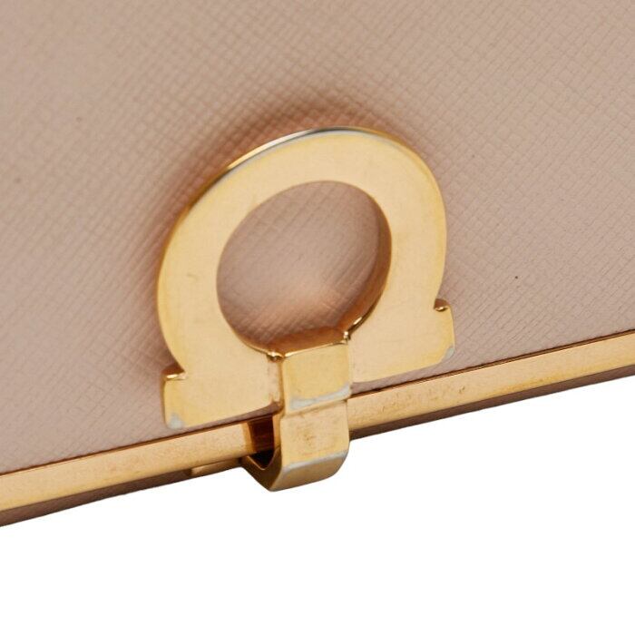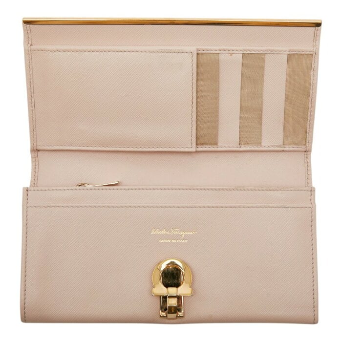 サルヴァトーレフェラガモ ガンチーニ ロングウォレット 長財布 GJ-224633 ピンク ゴールド レザー レディース Salvatore Ferragamo 【中古】