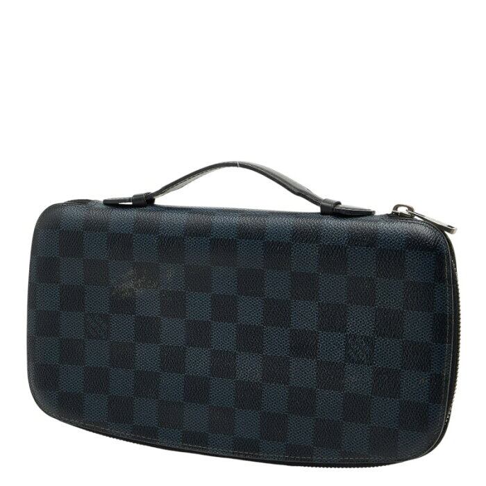 ルイ ヴィトン ダミエ コバルト オーガナイザー アトール ラウンドファスナー 長財布 N63222 ネイビー PVC レザー メンズ LOUIS VUITTON 【中古】