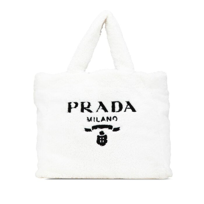 プラダ SPUGNA トートバッグ 1BG130 ホワイト ビアンコ パイル レディース PRADA 【中古】