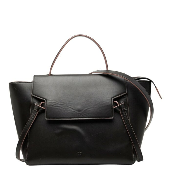 セリーヌ ベルトバッグ ハンドバッグ ショルダーバッグ 2WAY ダークブラウン ピンク レザー レディース CELINE 【中古】