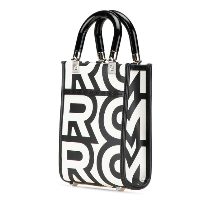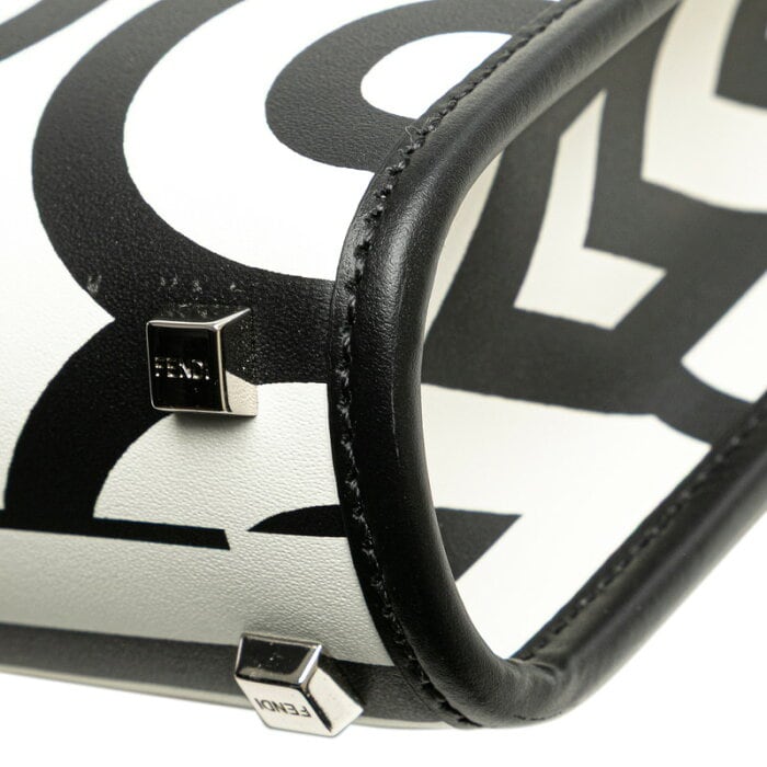 フェンディ × マークジェイコブス MARC JACOBS サンシャイン ショッパー スモール ハンドバッグ ショルダーバッグ 2WAY ブラック ホワイト レザー レディース FENDI 【中古】
