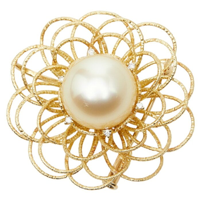 真珠 K18YG イエローゴールド 南洋白蝶真珠(ゴールデンパール)13.8mm ダイヤ0.06ct ブローチ ネックレストップ ペンダント レディース 【中古】