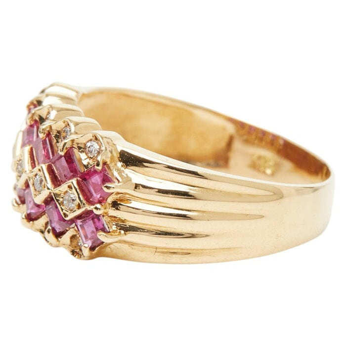 K18YG イエローゴールド ルビー ダイヤ リング 指輪 レディース 10号 【中古】