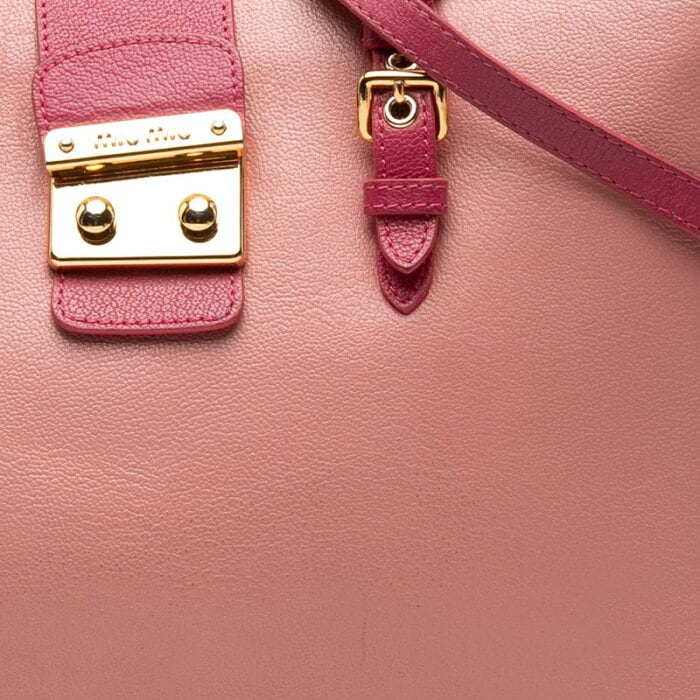 ミュウミュウ ロゴ ハンドバッグ ショルダーバッグ ピンク レザー レディース MIUMIU 【中古】