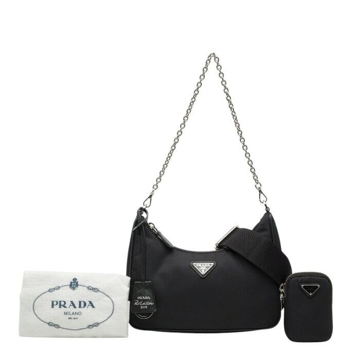 プラダ Re-Edition 2005 Re-Nylon ショルダーバッグ チェーンハンドバッグ 2WAY 1BH204 ブラック ナイロン サフィアーノレザー レディース PRADA 【中古】