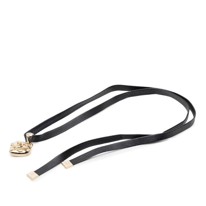 シャネル ハートロケット ターンロック モチーフ ネックレス ゴールド ブラック メッキ レザー レディース CHANEL 【中古】