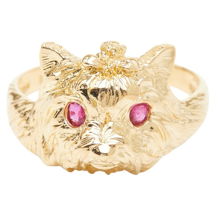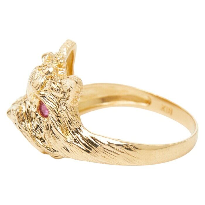 K18YG イエローゴールド ルビー ヨークシャーテリアモチーフ リング 指輪 レディース 11号 【中古】