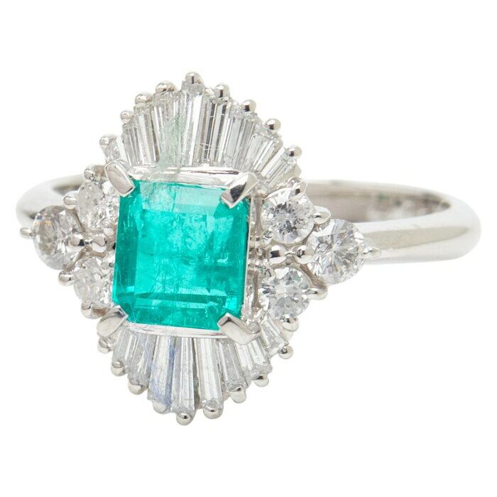 Pt900 プラチナ エメラルド1.05ct ダイヤ0.77ct リング 指輪 レディース 12.5号 【中古】