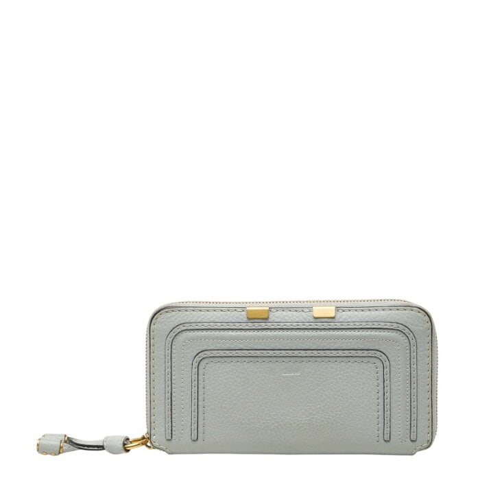 クロエ マーシー ラウンドファスナー 長財布 ライトブルー レザー レディース Chloe 【中古】