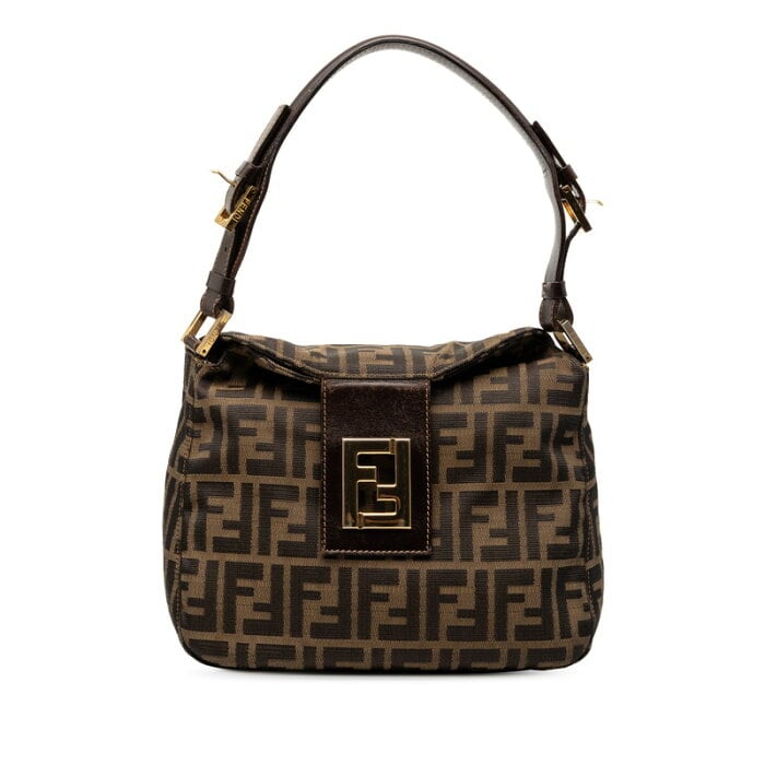 フェンディ ズッカ マンマバケット ワンショルダーバッグ ハンドバッグ カーキ ブラウン キャンバス レザー レディース FENDI 【中古】