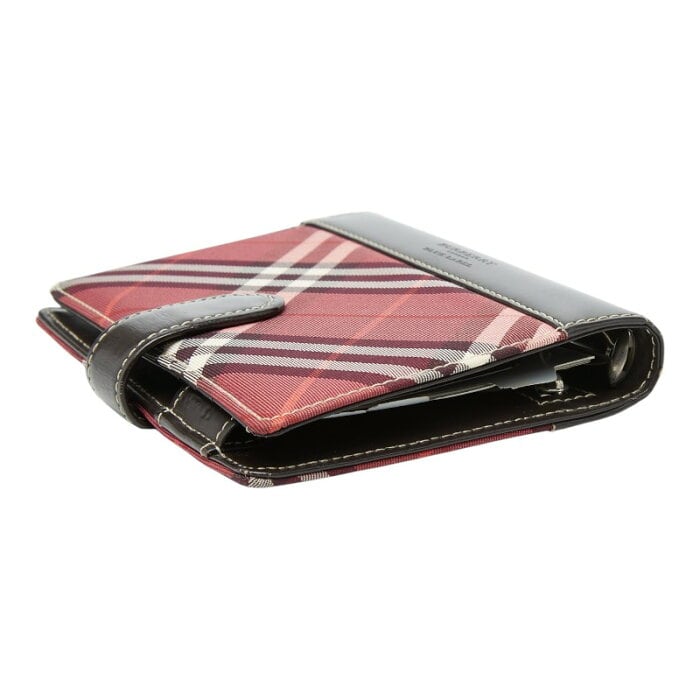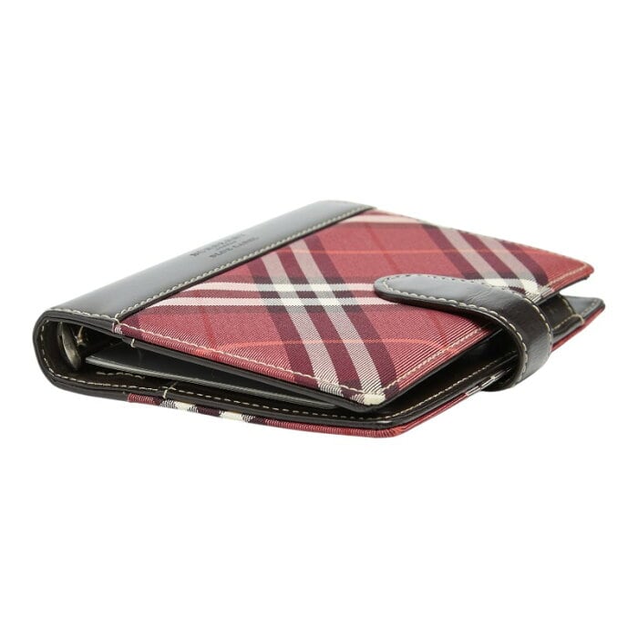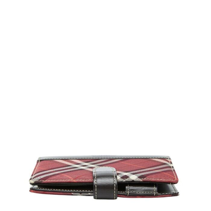 バーバリー ノバチェック 手帳カバー システム手帳 レッド ブラウン キャンバス レザー レディース BURBERRY 【中古】