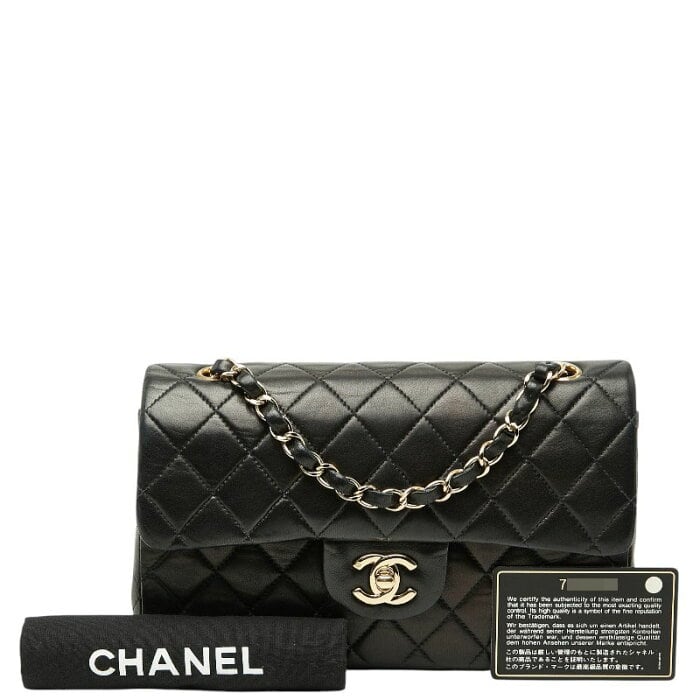 シャネル ココマーク マトラッセ23 ダブルフラップ チェーンショルダーバッグ ブラック ラムスキン レディース CHANEL 【中古】