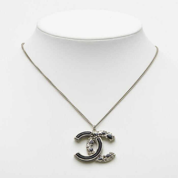シャネル ココマーク ネックレス シルバー ブラック メタル エナメル レディース CHANEL 【中古】