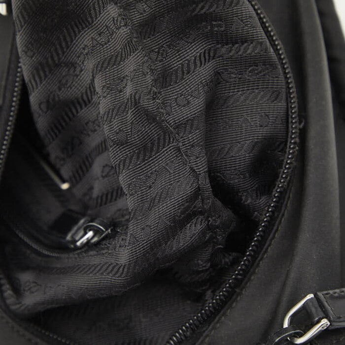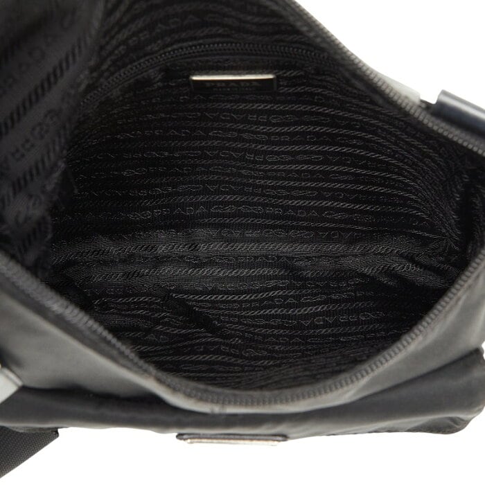 プラダ 三角ロゴプレート 斜め掛け ショルダーバッグ ブラック ナイロン レザー レディース PRADA 【中古】