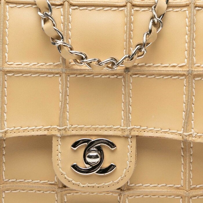 シャネル ワイルドステッチ ココマーク チョコバー チェーン ショルダーバッグ ベージュ レザー レディース CHANEL 【中古】