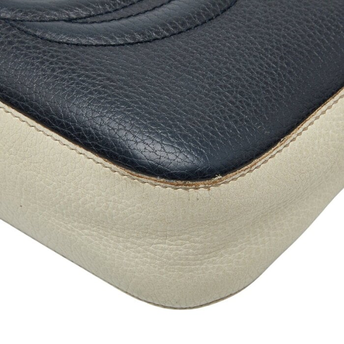 グッチ インターロッキングG ソーホー スモールディスコ 斜め掛け ショルダーバッグ 431567 ネイビー ホワイト レッド レザー レディース GUCCI 【中古】
