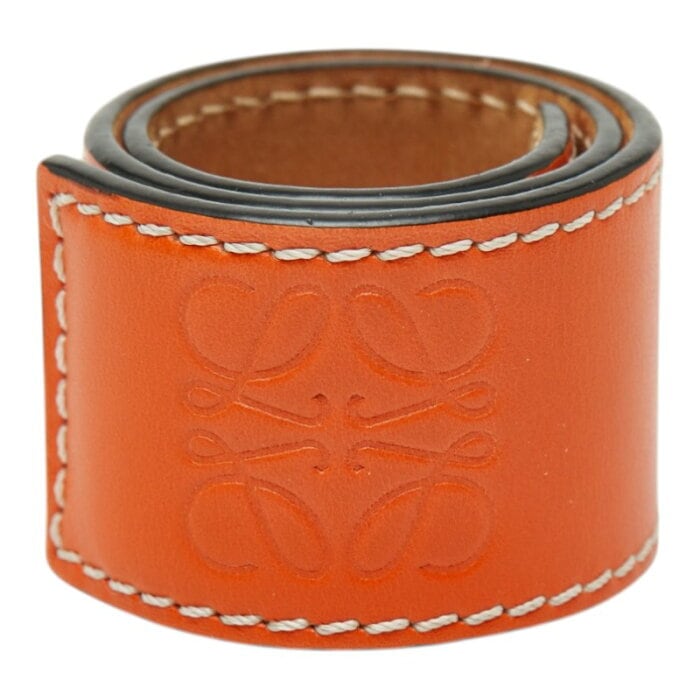 ロエベ アナグラム スラップ エンボス ブレスレット バングル オレンジ レザー レディース LOEWE 【中古】