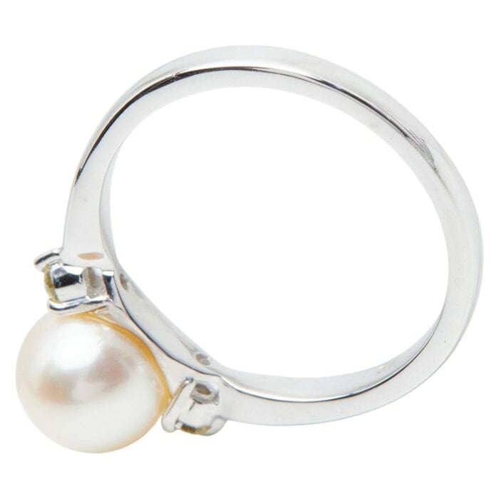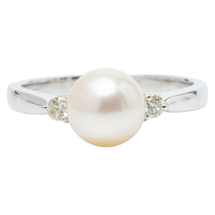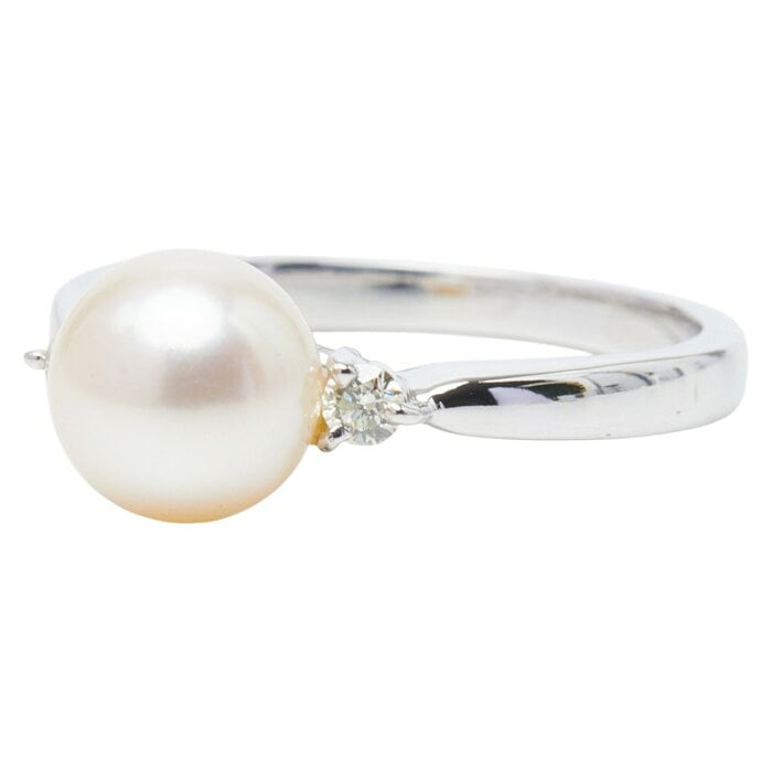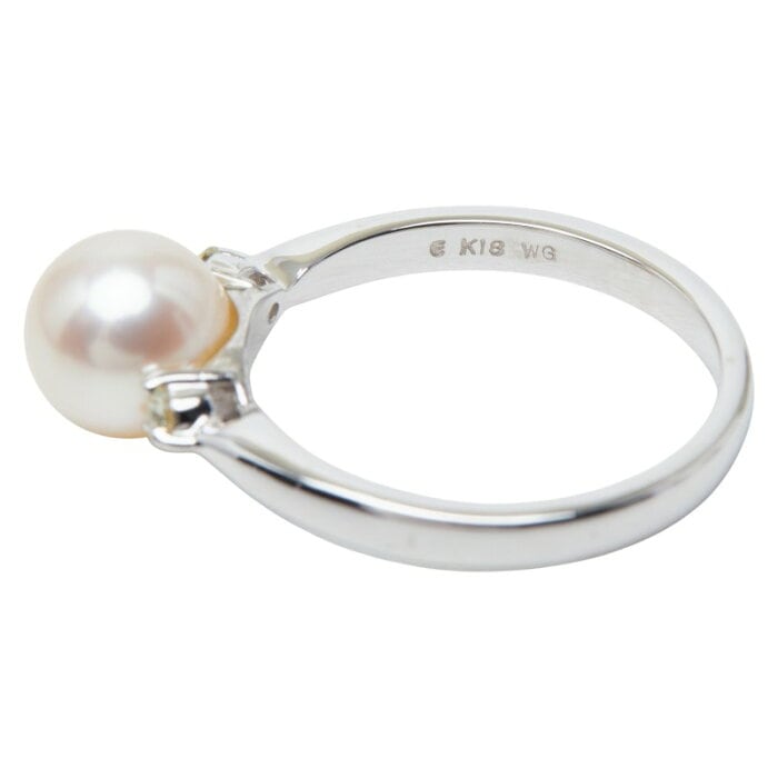 真珠 K18WG ホワイトゴールド アコヤパール7.2~7.3mm ダイヤ リング 指輪 レディース 11号 【中古】