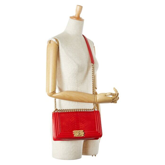 シャネル ココマーク ボーイシャネル25 斜め掛け チェーン ショルダーバッグ レッド ラムスキン パイソン レディース CHANEL 【中古】