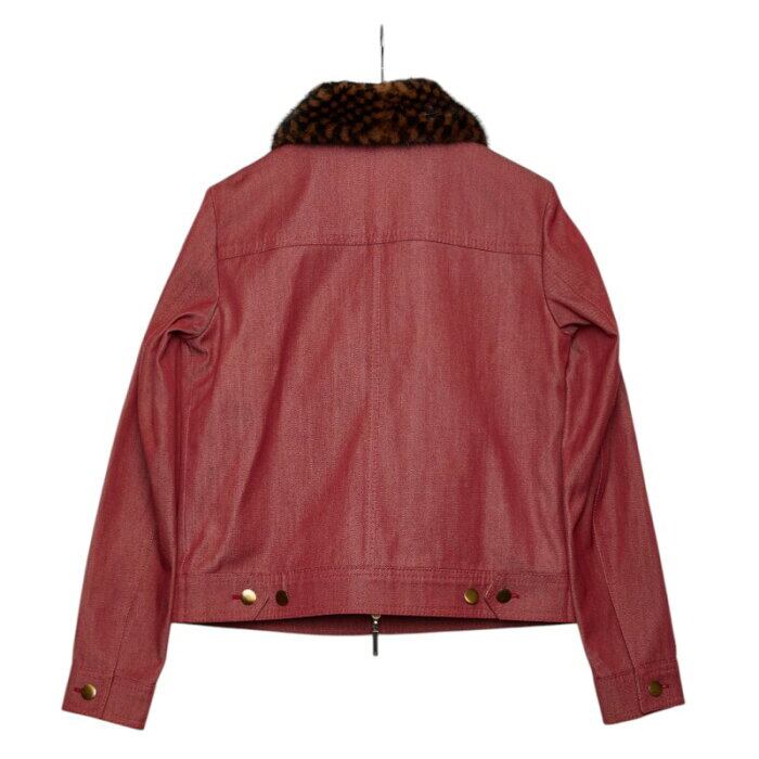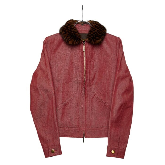 ルイ ヴィトン ダブルジップ ファー デニムジャケット ドリズラージャケット サイズ40 ���インレッド コットン ウール ミンク レディース LOUIS VUITTON 【中古】