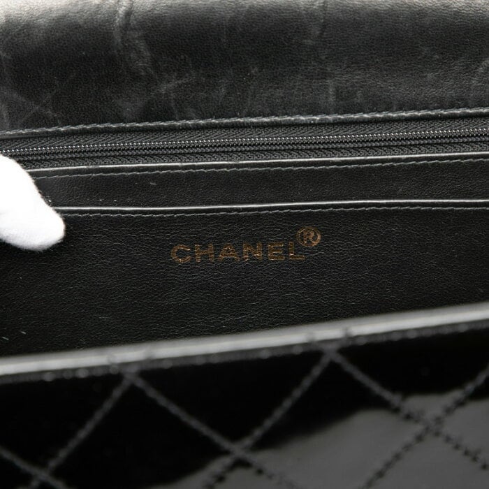 シャネル マトラッセ ココマーク チェーン ショルダーバッグ ブラック パテントレザー レディース CHANEL 【中古】