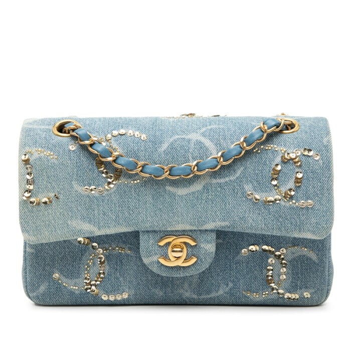 シャネル マトラッセ ココマーク ショルダーバッグ ブルー ゴールド デニム スパンコール レディース CHANEL 【中古】