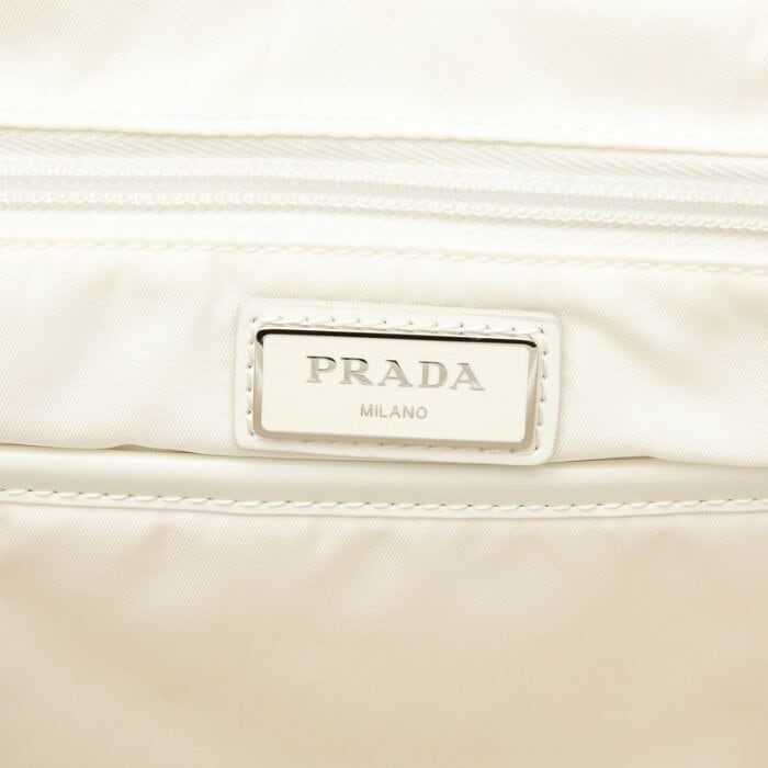 プラダ 21SS 三角ロゴプレート シニョープリント バックパック リュック デイパック 1BZ072 ホワイト ナイロン レディース PRADA 【中古】