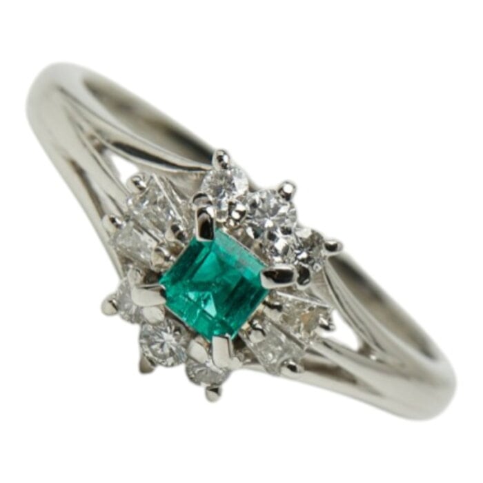 ミキモト Pt900 プラチナ エメラルド0.15ct ダイヤ0.22ct リング 指輪 レディース MIKIMOTO 8号 【中古】