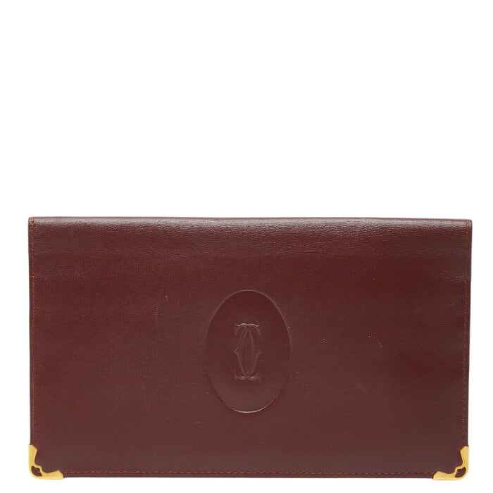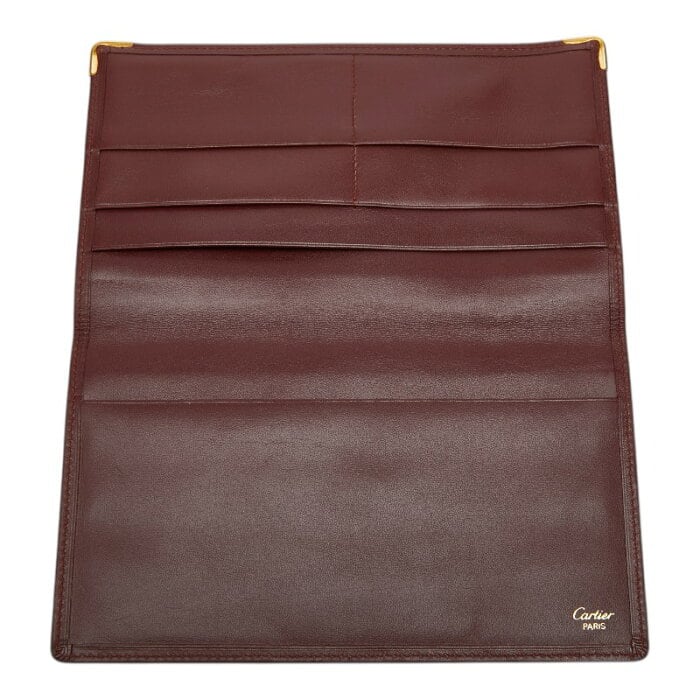 カルティエ マストライン 二つ折り 長財布 札入れ ボルドー ワインレッド レザー レディース CARTIER 【中古】