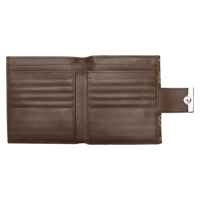 グッチ GGキャンバス 二つ折り財布 035 0959 2249 ブラウン キャンバス レザー レディース GUCCI 【中古】