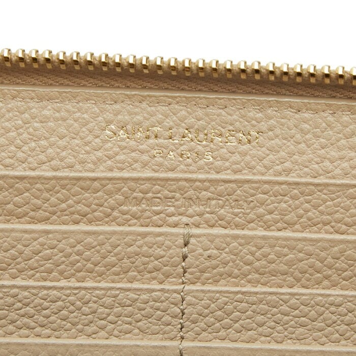サンローラン YSLロゴ ラウンドジップ ウォレット 長財布 414570 ベージュ レザー レディース SAINT LAURENT 【中古】