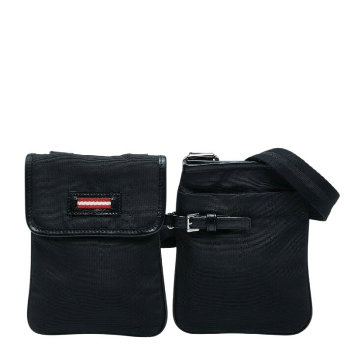 バリー ウエストバッグ ショルダーバッグ 2WAY ブラック キャンバス レザー レディース BALLY 【中古】