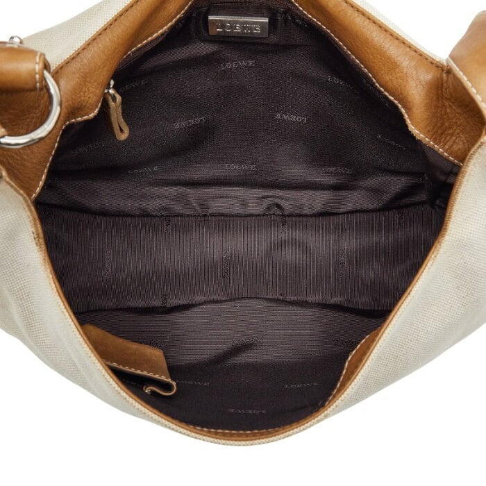 ロエベ アナグラム スタッズ 斜め掛け ショルダーバッグ ホワイト ベージュ キャンバス レザー レディース LOEWE 【中古】