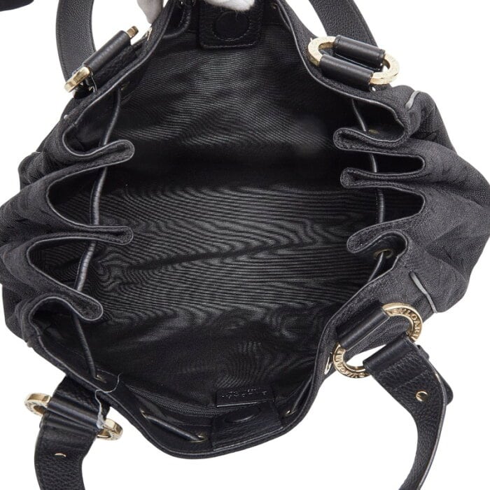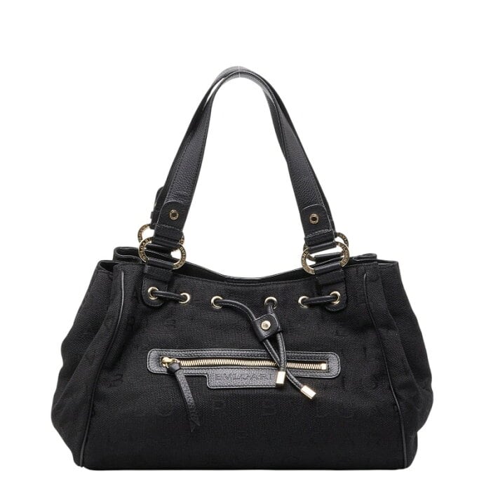 ブルガリ ロゴマニア マキシレッタレ トートバッグ ハンドバッグ ブラック レザー ジャガードキャンバス レディース BVLGARI 【中古】