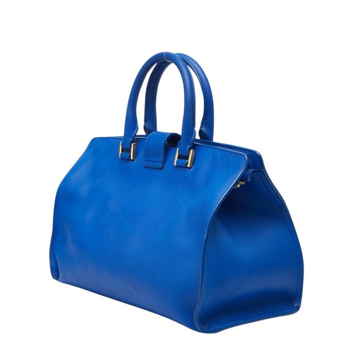 サンローラン Yライン プチカバス ハンドバッグ ショルダーバッグ 2WAY 311210 ブルー レザー レディース SAINT LAURENT 【中古】