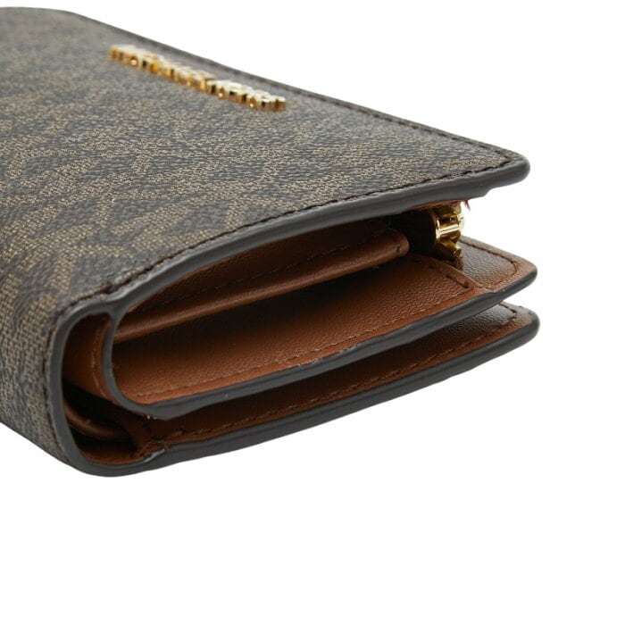 マイケルコース MKシグネチャー JET SET TRAVEL ビルフォールド コンパクト ウォレット ミディアム 二つ折り財布 ブラウン PVC レディース Michael Kors 【中古】